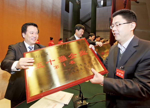 ¡¡¡¡2ÔÂ26ÈÕ£¬È«ÊÐÈý¼¶¸É²¿»áÒéÔÚΫ·»¿Æ¼¼Ñ§Ôº¹ú¼Ê»áÒéÖÐÐÄ¡³ÁÕÙ¿ª¡£»áÒéÔÞÃÀ¼Î½±ÁË2012Äê¶ÈÏȽøµ¥Ôª¡¢ÏȽø¼¯ÌåºÍÏȽøÓ×ÎÒ£¬ÎÒ¹«Ë¾Î»ÁÐÈ«ÊÐÎåʮǿµÚÒ»Ãû¡£Í¼ÎªÊÐίÊé¼ÇËïÃ÷ÁÁΪÎÒ¹«Ë¾Ðû¸æ½±ÅÆ¡£